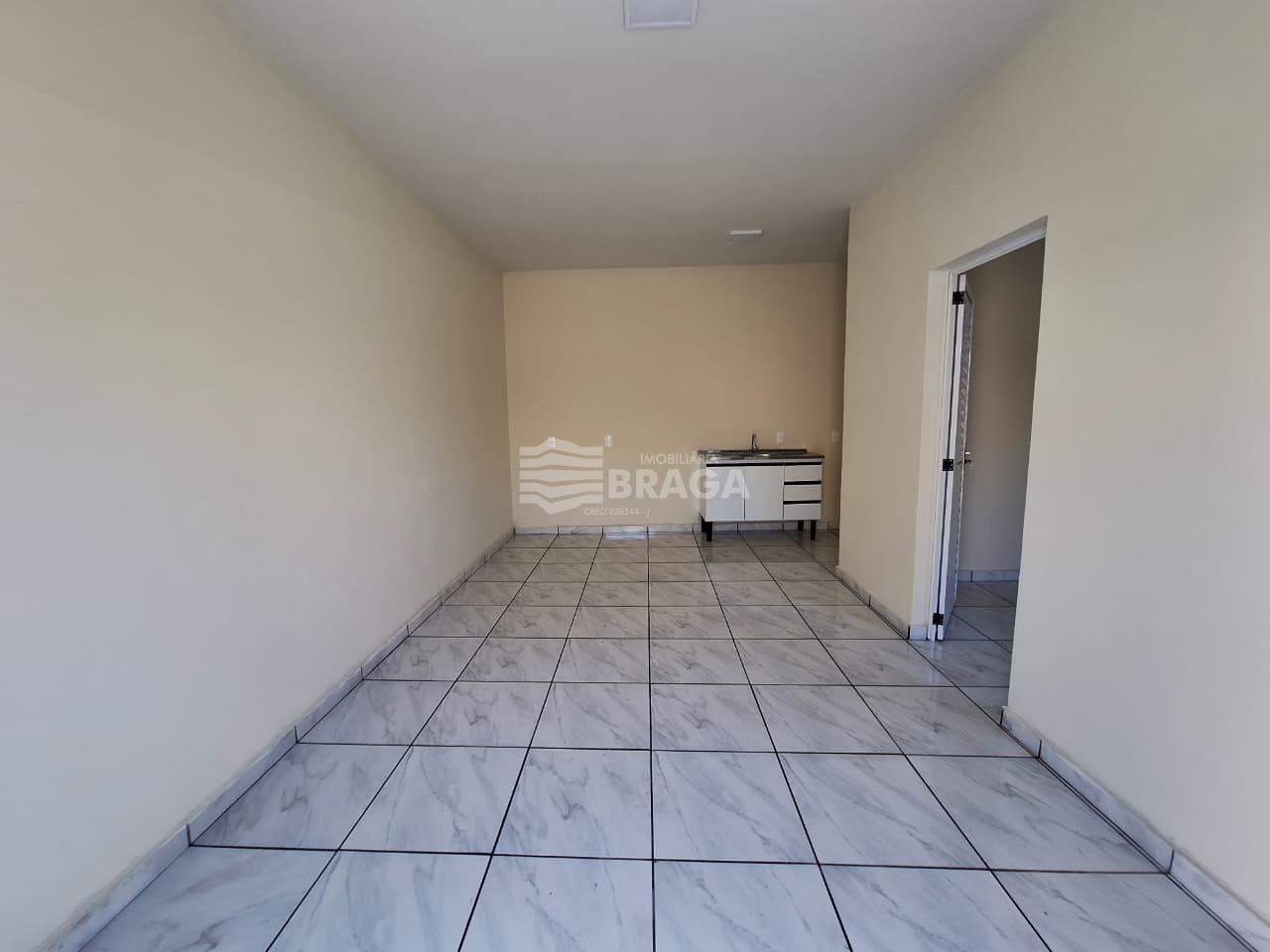 Conta com sala e cozinha integradas, suíte ampla e uma vaga de garagem.