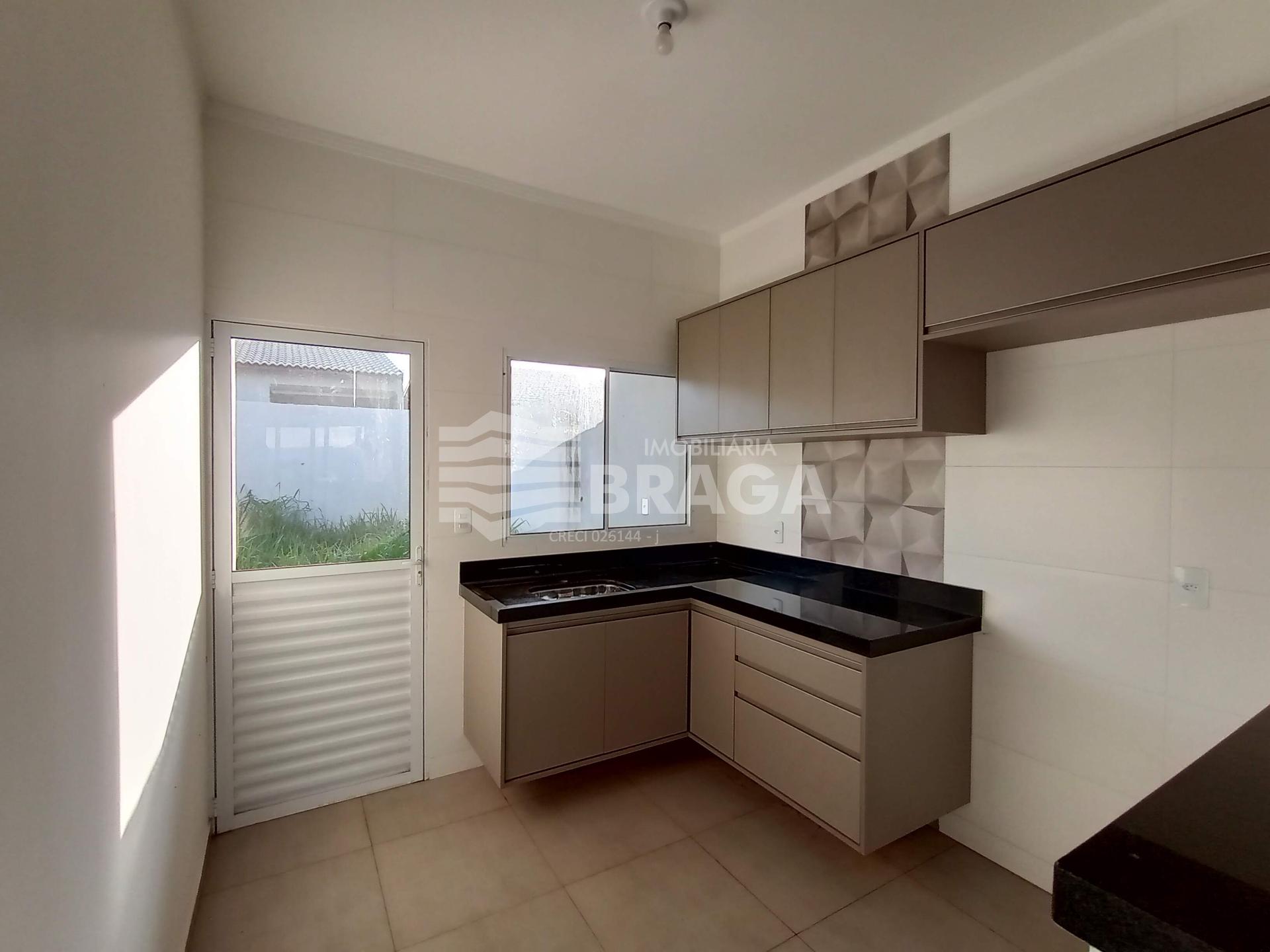 CASA COM SALA PARA DOIS AMBIENTES COZINHA PLANEJADA 02 DORMITÓRIOS BANHEIRO SOCIAL COM GABINETE E BOX DE BLINDEX ÁREA DE SERVIÇO GARAGEM PARA 02 VEÍCULOS