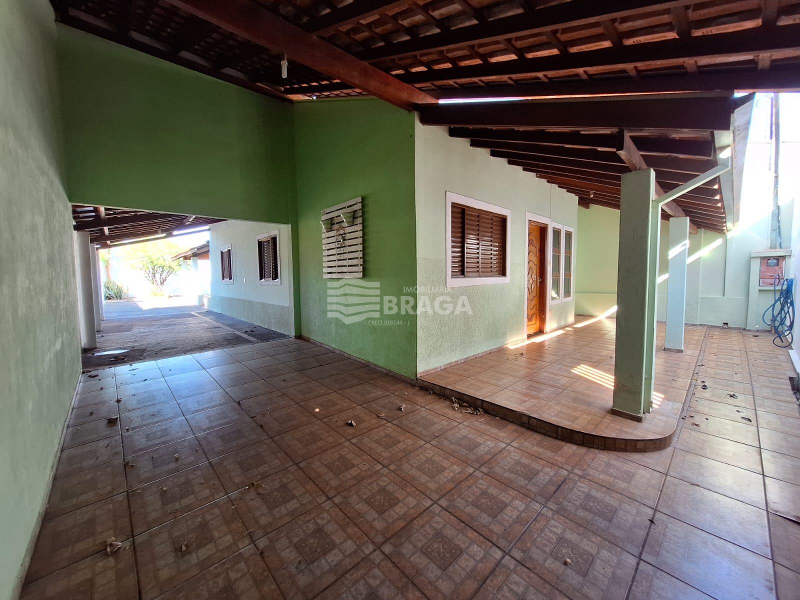 O imóvel conta com varanda, ampla sala de estar, três dormitórios, sala de jantar, jardim de inverno, cozinha, varanda e lavanderia fechada, além de banheiro externo, garagem para até 3 veículos e um quintal espaçoso.