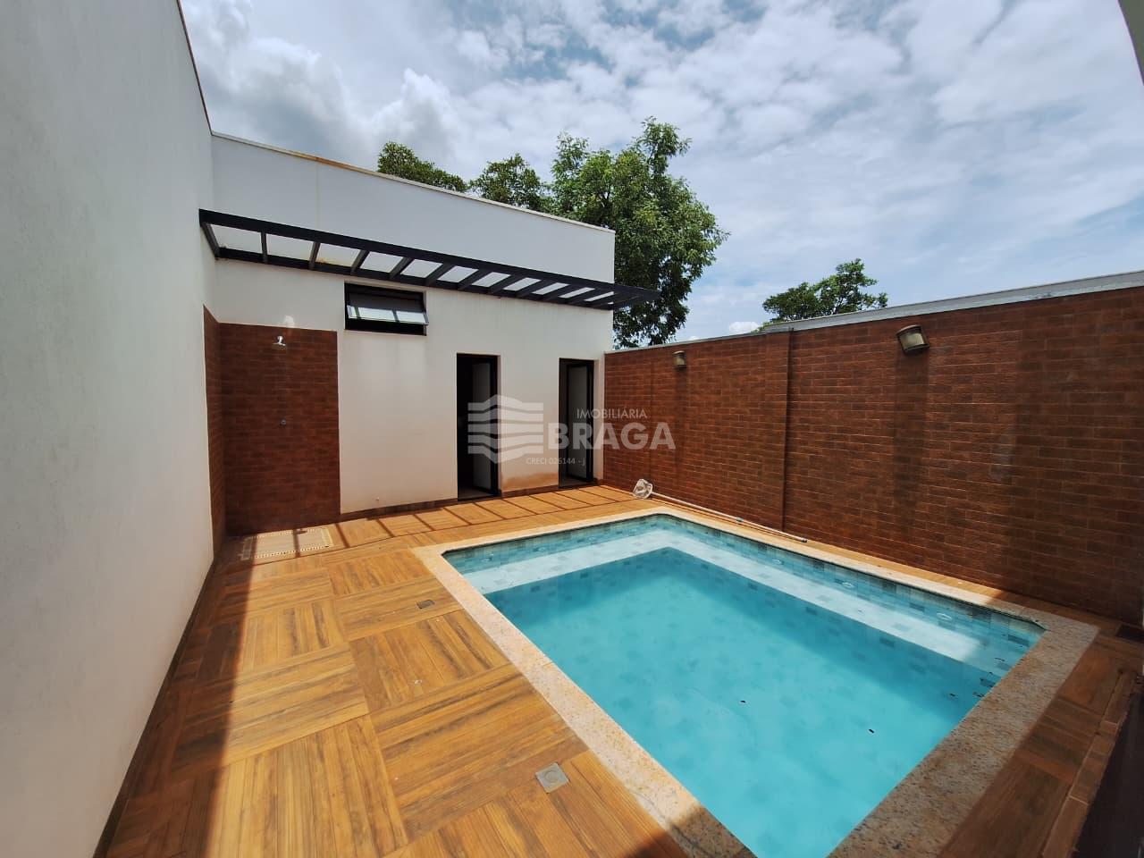 O imóvel conta com 3 dormitórios, sendo 1 suíte com closet, sala de estar, cozinha com armários planejados e uma agradável área gourmet com churrasqueira e piscina, perfeita para momentos de lazer e confraternização e garagem para até 2 veículos