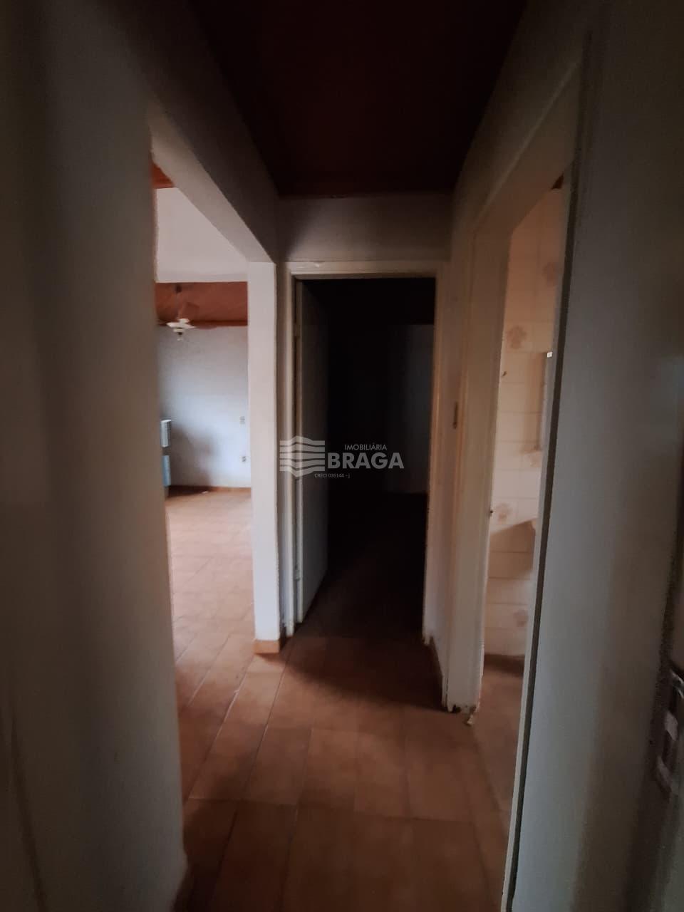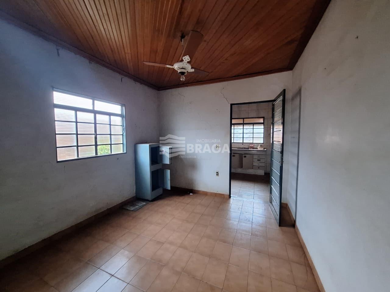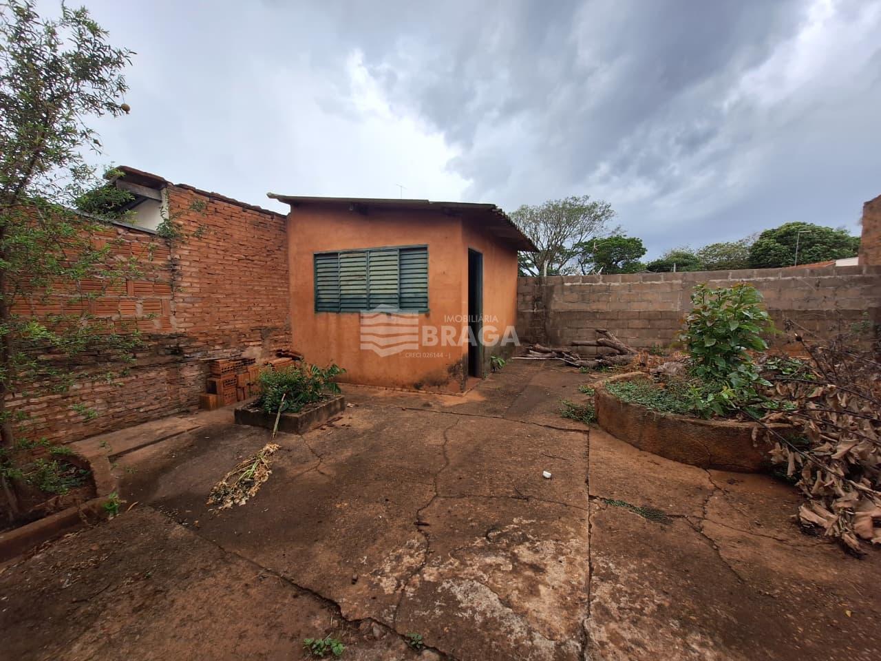Conta com 2 salas, cozinha, dois dormitórios, banheiro social, área de serviço, banheiro externo, quintal e vaga para até dois veículos.
