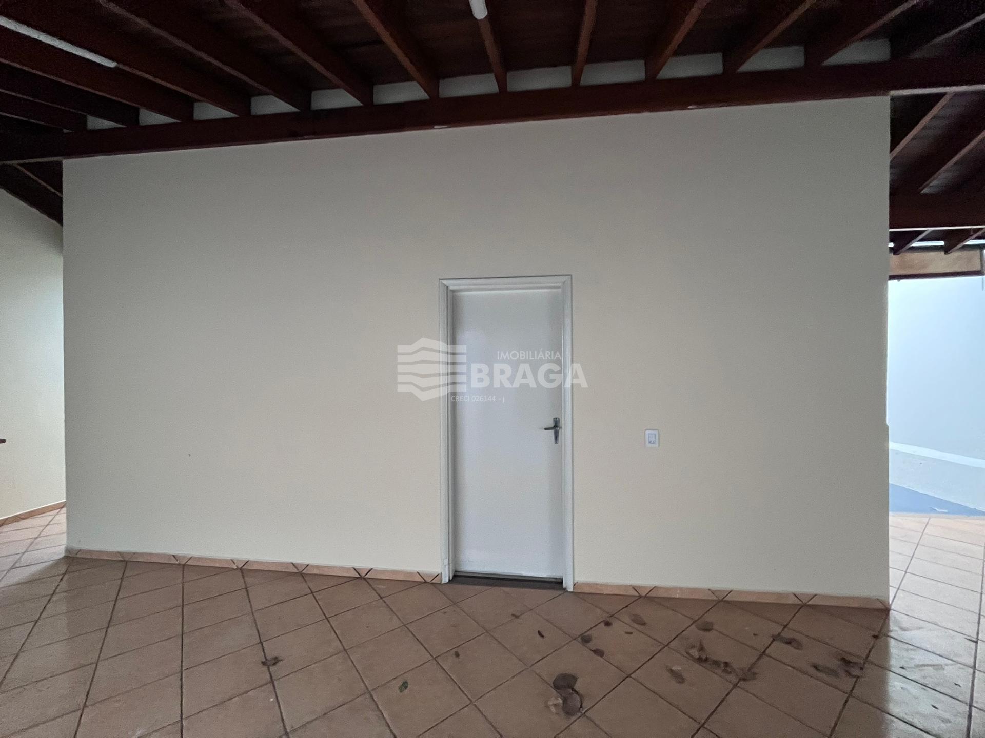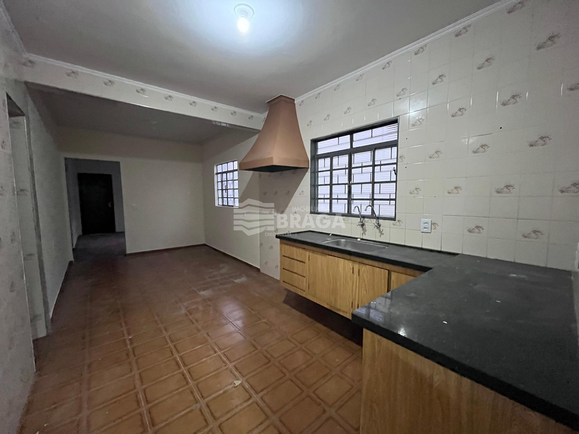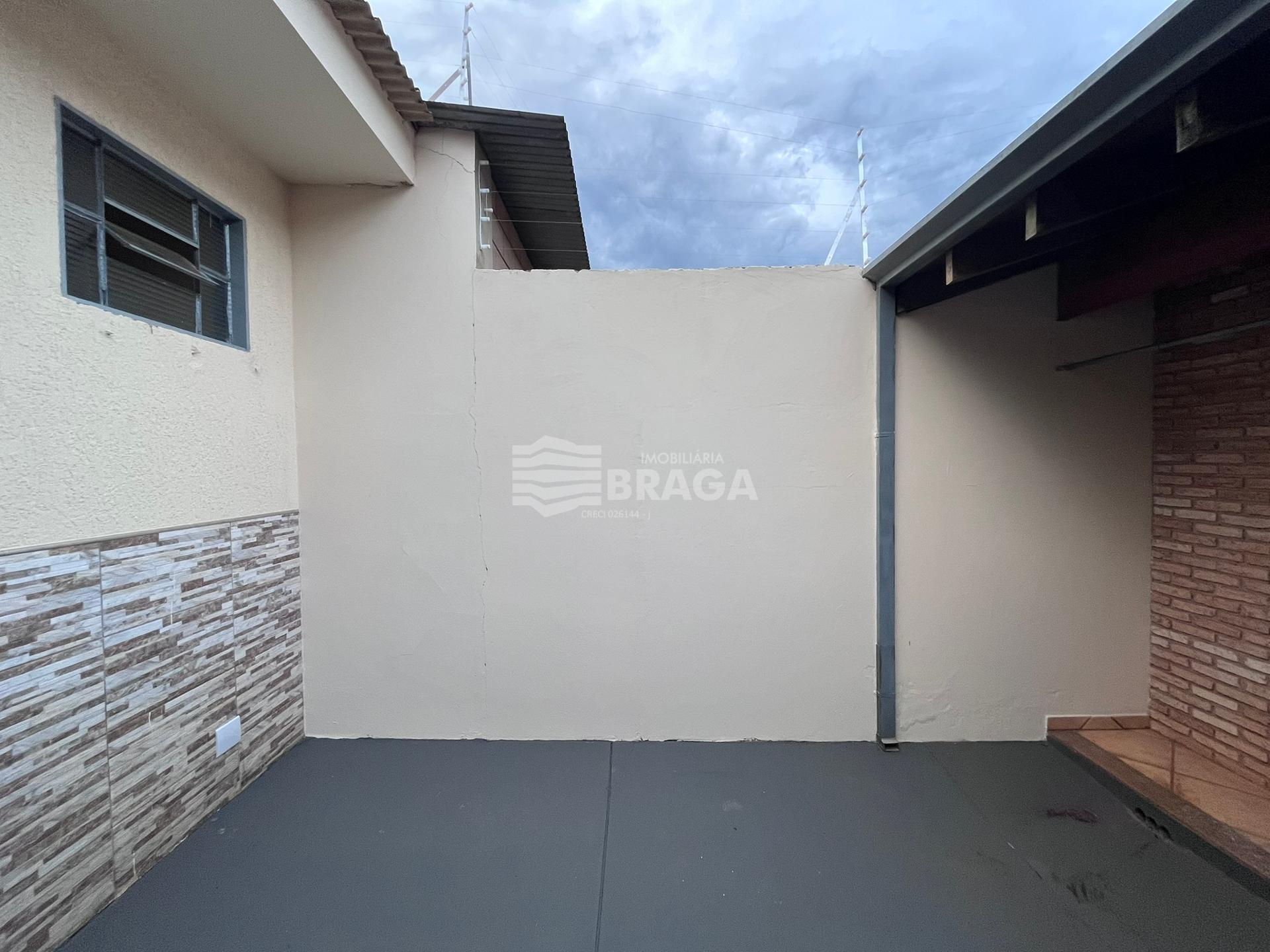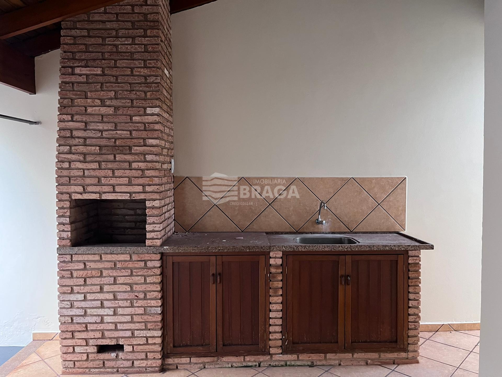 A casa conta com 03 dormitórios, sala de estar, sala de jantar, banheiro social, cozinha, área de lazer com churrasqueira, área de serviço e 02 vagas de garagem