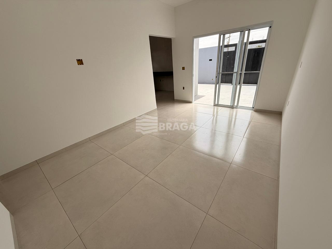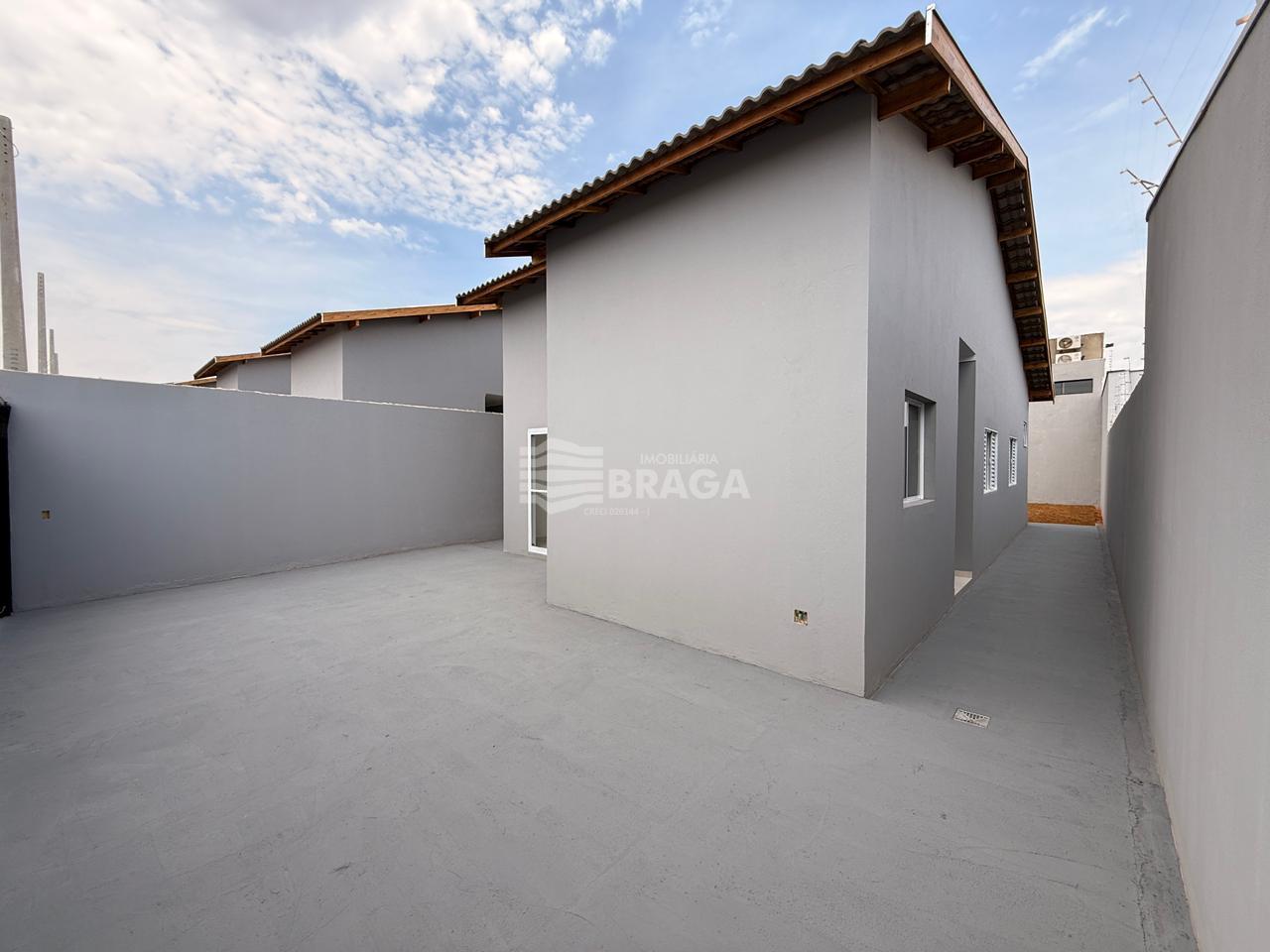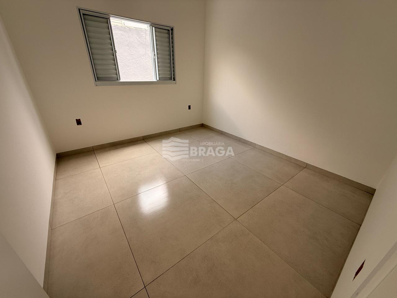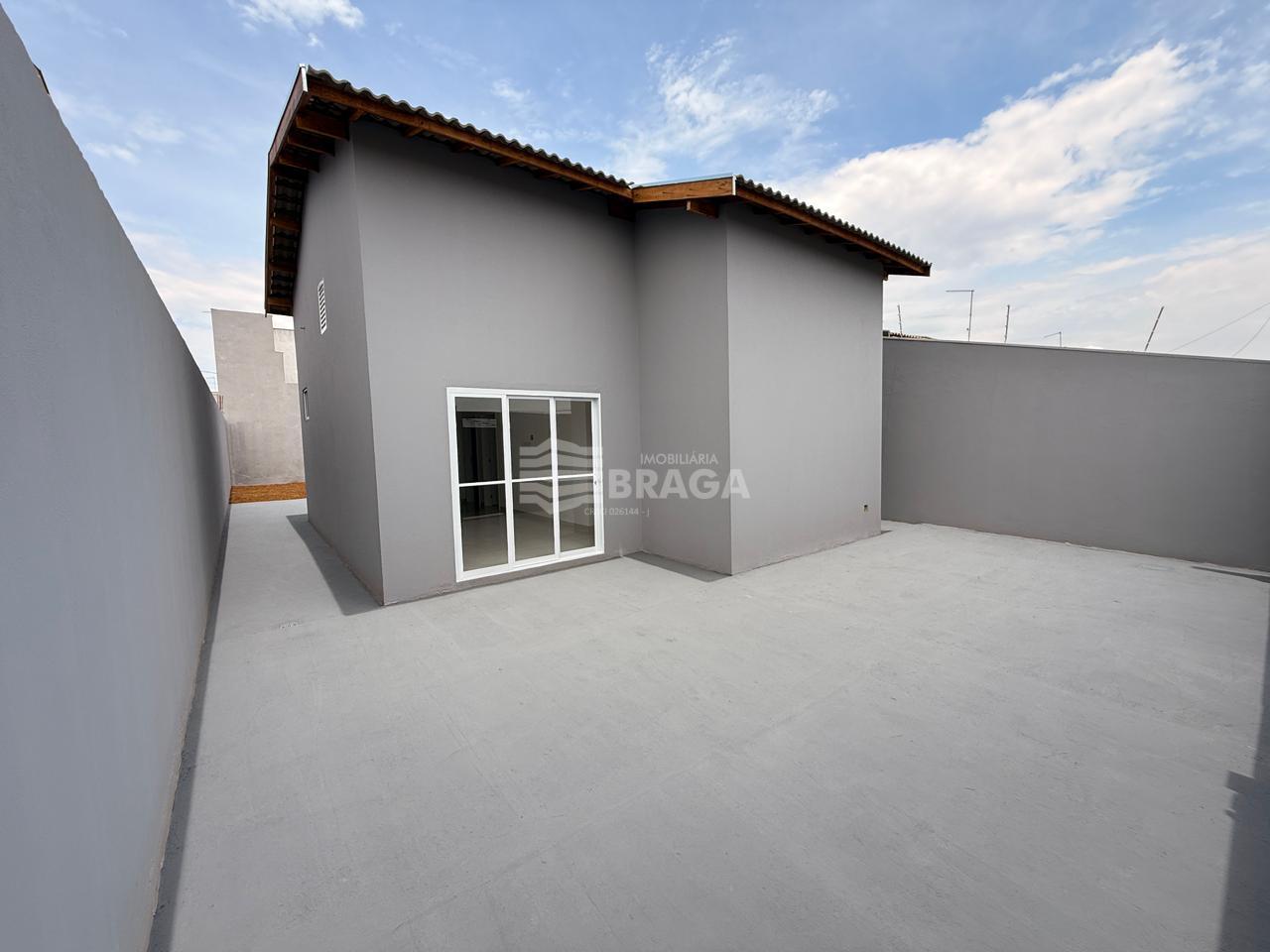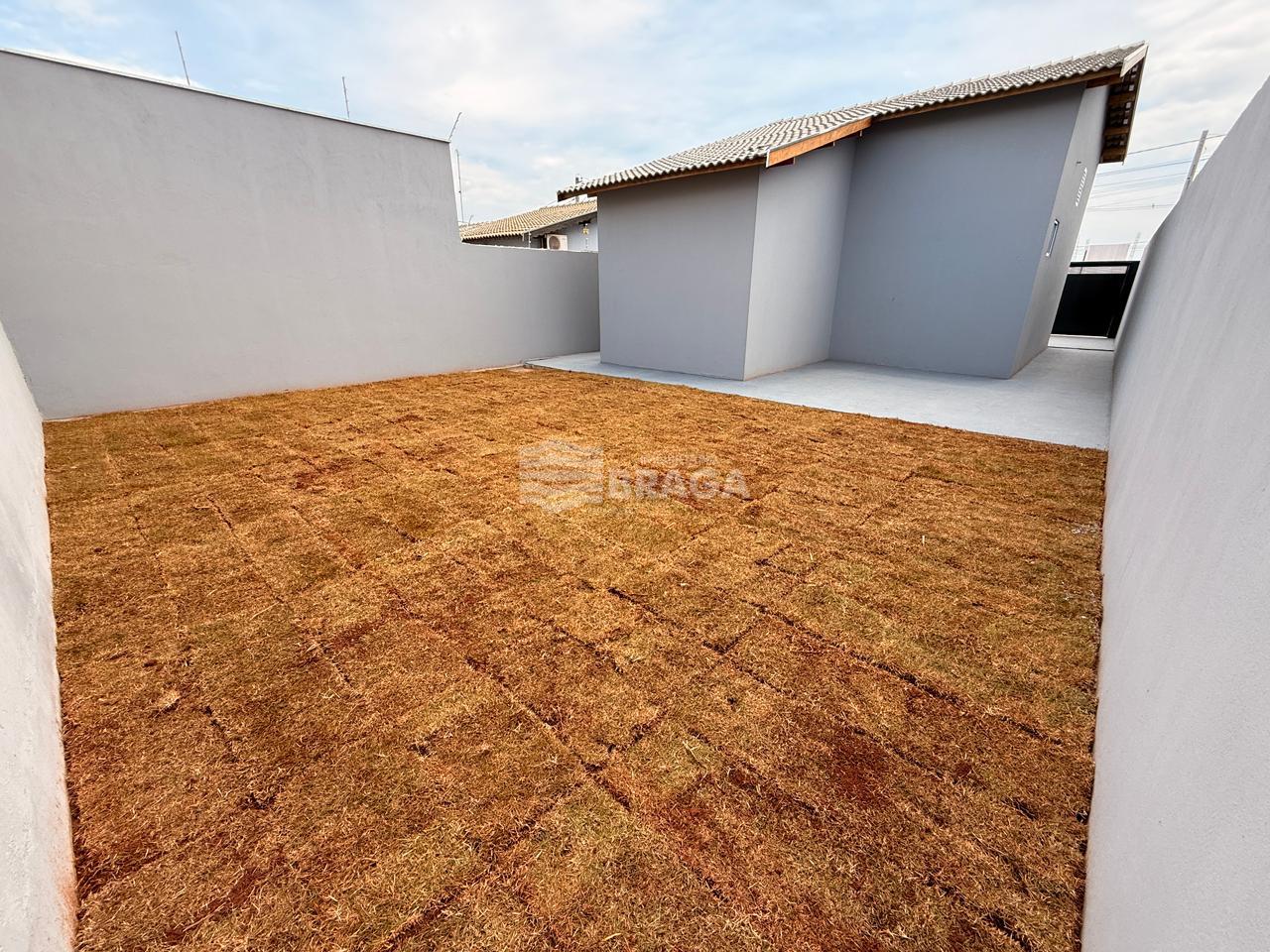 Imóvel com dois dormitórios, sendo um deles suíte, banheiro social, sala ampla, cozinha, área de serviço, vagas de garagem para até dois veículos e um quintal espaçoso.